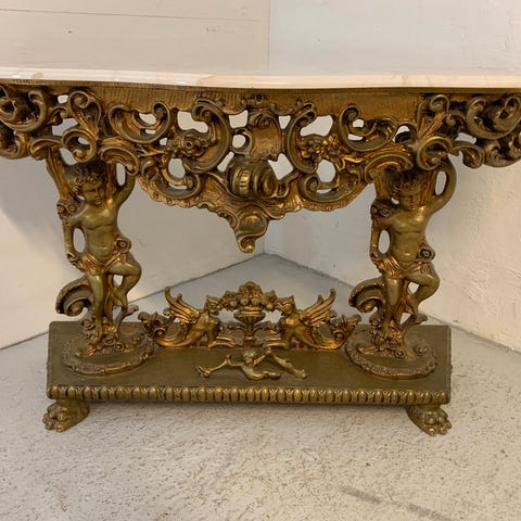 Konsolbord i smedejern med travertinplade