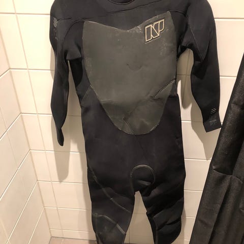 Har fået limet et lille hul i skridtet og så er velcro flapperne på skulderen misfarvet.