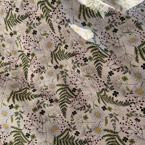 Stoffet er ekstra bredt (2,8 m) og 5 meter langt, i alt 14 m² stof.