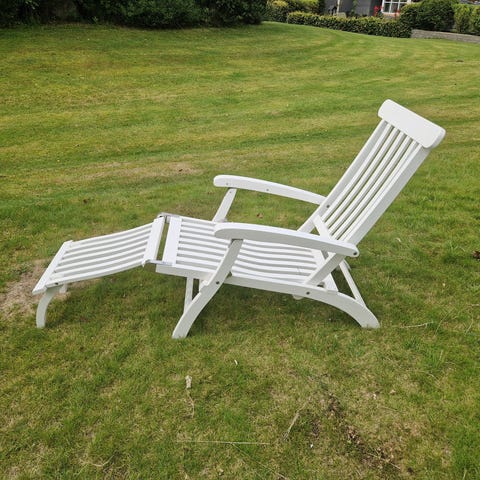 Dækstole med bord og grå hynder.