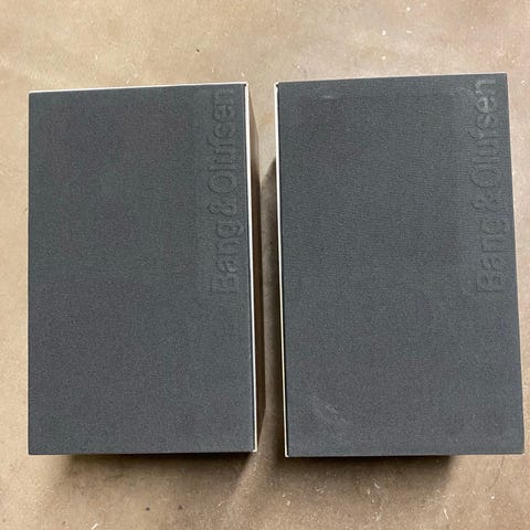 Bang & Olufsen MCX 35 højttalere i sort farve. Kompakt design med frontgitter og tilslutningsmuligheder bagpå. Velegnet til brug i hjemmet til afspilning af lyd fra forskellige enheder.