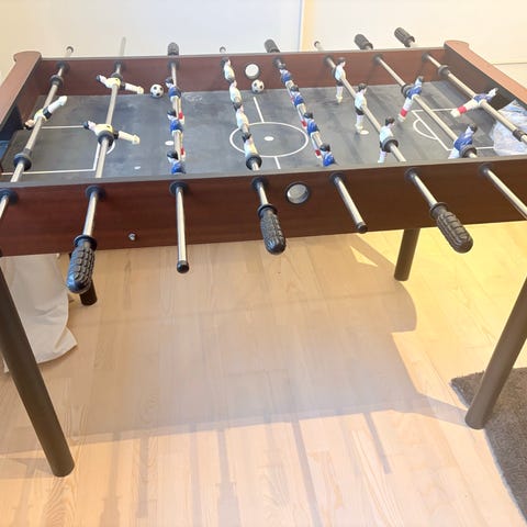 Står utrolig pænt og antikt. Bordfodboldbordet er 100 % funktionsdygtigt.