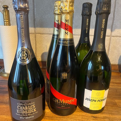 Mumm’s Formel 1 Champagne flaske, de er begge dummy flasker “tomme for væske”, flotte til udsmykning af vinkælderen