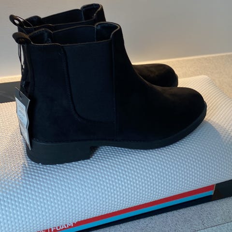 Støvler, str. 38, H&M , Sort, Ruskind, God men brugt, Ankelboots i ruskind med blokhæl sælges for 50 kr. den er kun brugt få gange. Stadig meget god støvler. NP: 399 kr.