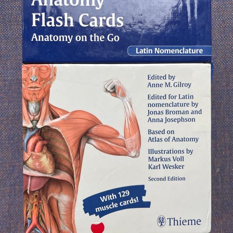 Flotte Thieme flashcards til salg (nyeste udgave med latinsk nomenklatur). De er aldrig blevet anvendt, og er derfor organiseret i perfekt rækkefølge. Er et godt redskab til lære anatomi.