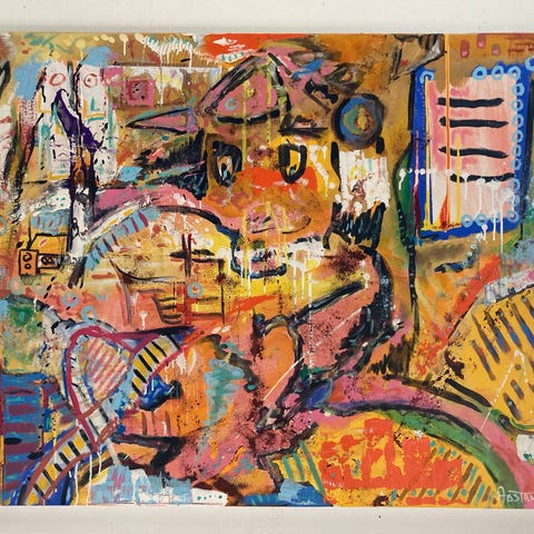 Henri Koé og Knud Damgaard som er kunstnerne bag Abstrhak indgik gennem et par år et samarbejde, hvor de gensidigt inspirerede hinanden og sammen skabte omkring 40 værker fulde af god energi, glade farver og ofte finurlige detaljer.