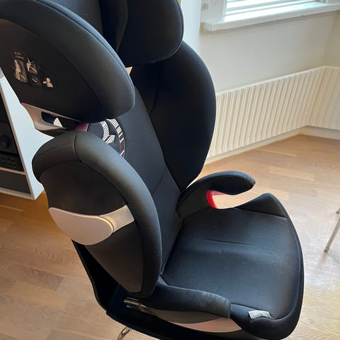 Med iso-fix og indstillelig nakkestøtte.