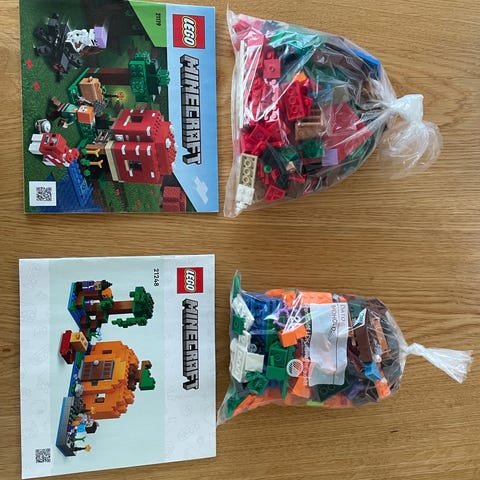 Ikke-original Lego Minecraft-konstruktør. Ikke trykt. En hel del detaljer. Og der burde være 8 væsner og små bygninger.