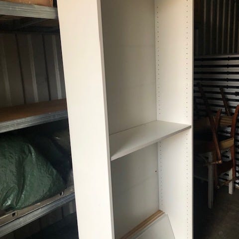 Reol med opdeling i 6 rum og 4 skuffer. Hvid glat blank overflade.,Afhentes i:,Røde Kors Ølby/Køge (259),Bemærk at mail, chat og beskeder ikke besvares, og varen skal købes på knappen "Gå til varen"