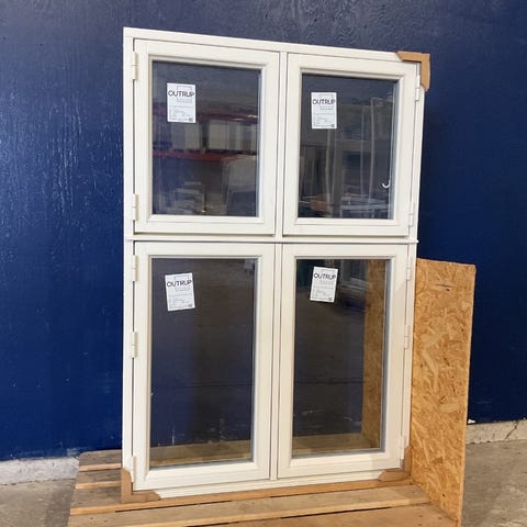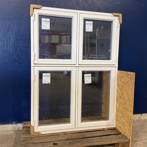 Ubrugt Outrup redningsvindue i klassisk Dannebrog design med 4 fag og 2-lags energiklasse A glas. Fremstillet i træ med sidehængsler og praktisk udluftningsfunktion. Stand 5/5 – et energieffektivt kvalitetsvindue. Varenummer: 1056