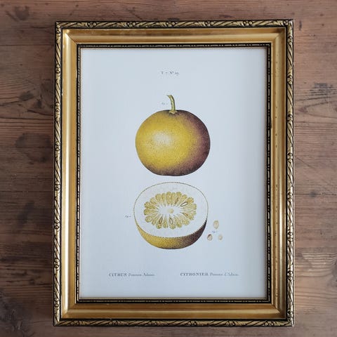 Originalen er en akvarel fra 1916 af melon sorten "Tom Watson" (!) - Dette er et gentryk, trykt på 200g syrefrit specialpapir, og sat i en skøn gammel guldramme, med masser af sjæl og patina, Jeg har renset den og lavet ny bagbeklædning.