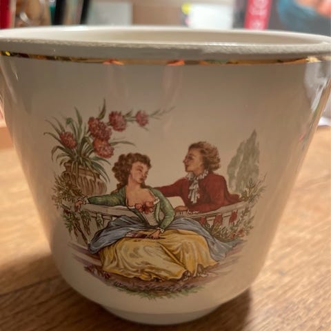 Staffordshire England, Flot gammel urtepotte brugt men i god stand, guldkant for oven og for neden. anden sortering. Kan afhentes i Grenå eller sendes, køber betaler fragten.