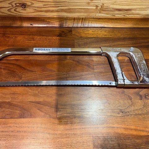 kødsav, saver også i ben. den gode mærke dich. rustfri stål, plastic håndtag. kun brugt få gange. velholdt. nypris kr. 1400,00, sælges til halvpris