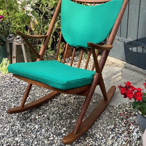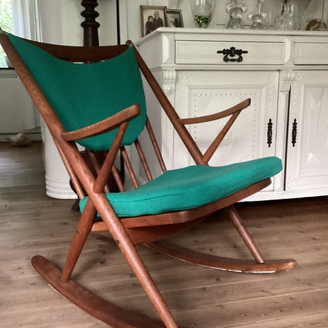 Flot gyngestol i teaktræ, designet af Frank Reenskaug i 1958
