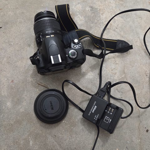 Nikon DSLR med Sigma Zoom objektiv. Oplader mangler.