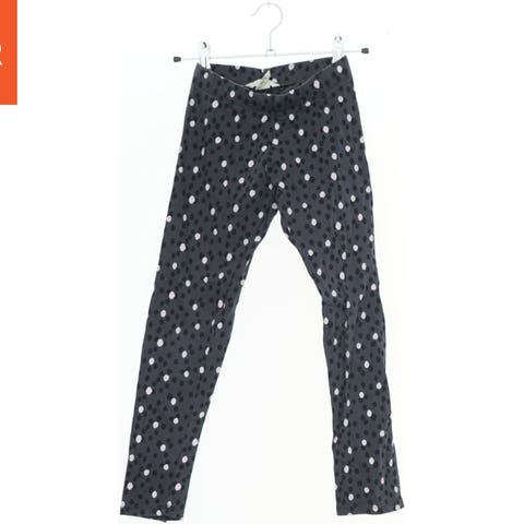 Et par børneleggings i beige farve med et mønster af små prikker i forskellige farver såsom sort, brun og rosa. Leggingsene er designet til at være komfortable og strækbare.