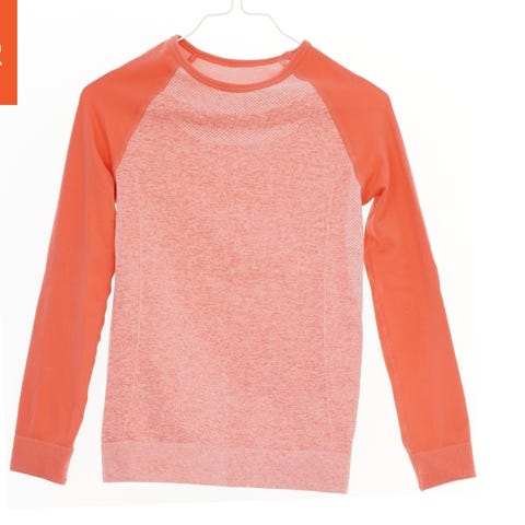 Dette er en langærmet bluse i lyserød farve. Blusen har en rund halsudskæring og et simpelt design med tre små printede hjerter i en mørkere tone på forsiden. Stoffet ser ud til at være blødt og behageligt. Der er ingen synlige knapper eller lynlåse.