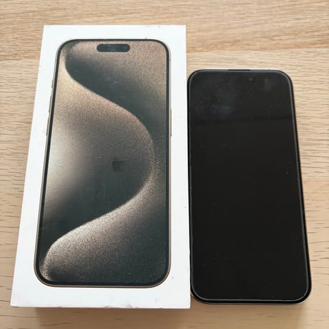 iPhone 15 Pro, Blue Titanium, 256GB. Batteri på 91% incl et originalt MagSafe Apple cover, emballage og usb-c kabel medfølger. Har en lille ridse og et lille hak i øverste venstre hjørne af skærmen. Nulstilles selvfølgelig ved salg.