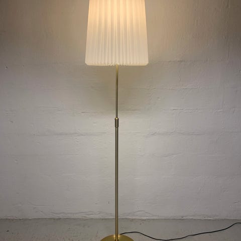 Fin klassisk Gulvlampe i profileret messing kan justeres højden med leKlint skærm