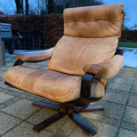 Retro lænestol i brunt læder – klassisk dansk stil