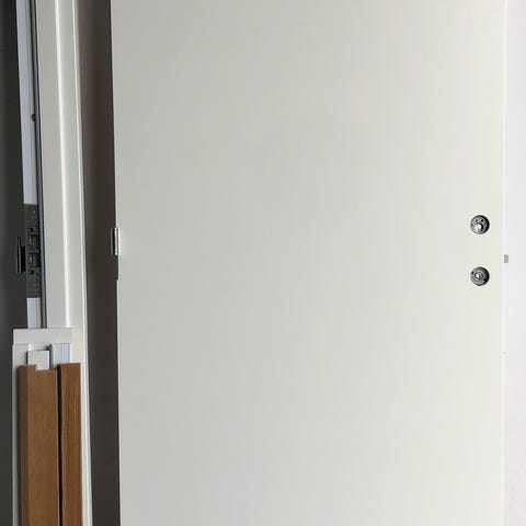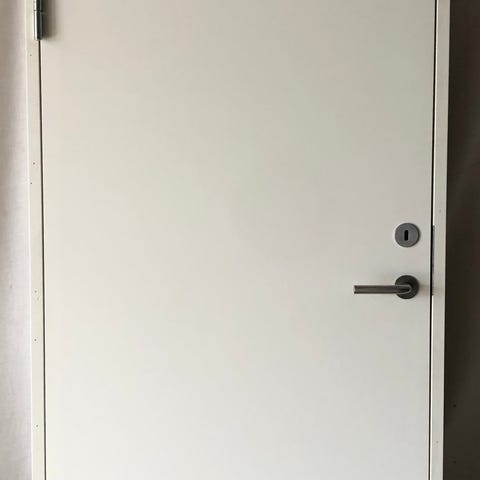 Døren er ny BD30 med 35 db og dørspion og sparkplade.