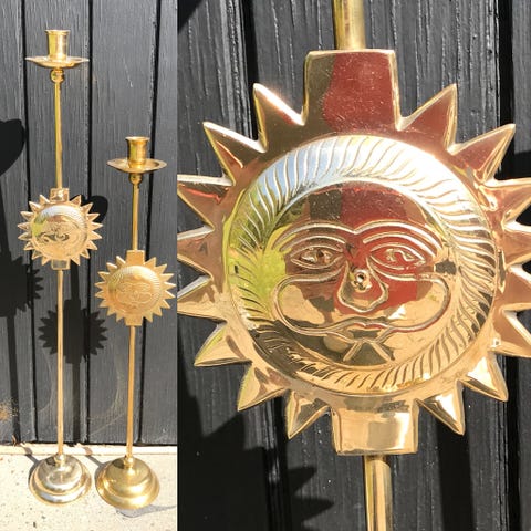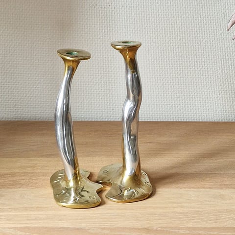 Håndstøbt i messing og aluminium med et elegant, fakkelinspireret udtryk.