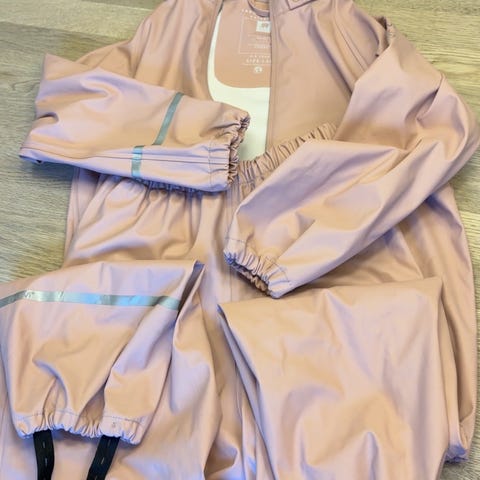 Lækkert blødt regnsæt i navy/hvid 🌧️ Er som nyt, da bukserne aldrig har været brugt og jakken kun 1-2 gange. Så ingen brugsspor.