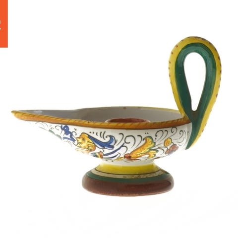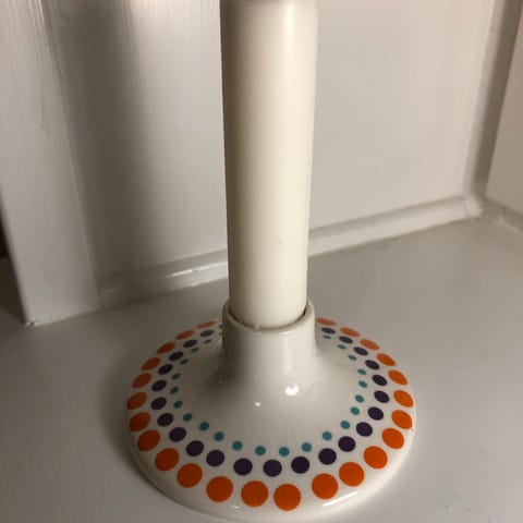 Sælger denne fine dansk designet lysestage i smuk glasering og mønster. Er til almindelig stagelys. Ø 13 cm. Den koster 65 kr.