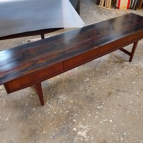 Helt fantastisk unika møbel Bænk fra færge i massiv mahogni Oprindelig til redningsbælter L.240-B.60-Ryghøjde 90 cm Ordnet med olie til både udendørs og indendørs brug