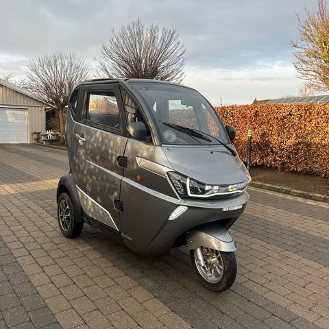Elektrisk Mini Bil med 3 hjul i blå farve. Designet til kortere ture og bykørsel med fokus på kompakt størrelse og nem manøvredygtighed. Egnet til enkeltpersoner, der har brug for en praktisk og pladsbesparende transportløsning.
