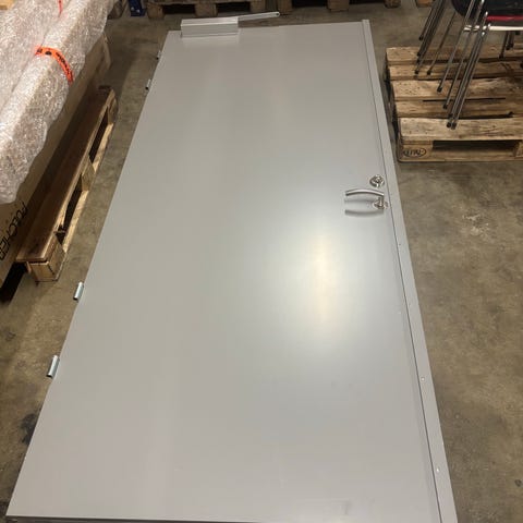 Døren har været brugt indendørs i en kort periode som en hoveddør. Alt er intakt. Der er ubetydelige brugsmærker på malingen.