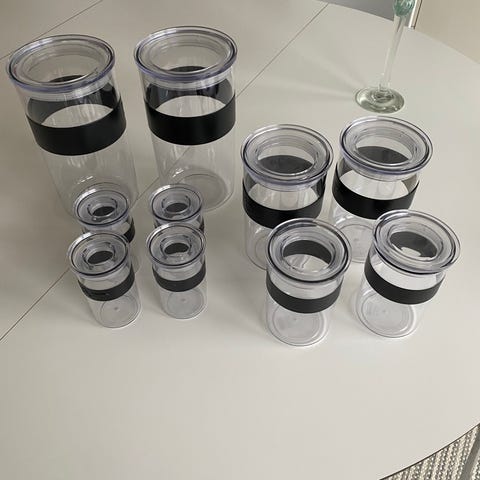 1 Bodum krydderiglas med låg af rustfrit stål 10 cm. højt -- 15 kr.