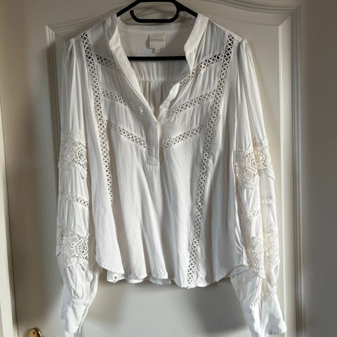 En feminin skjortebluse med fine blondedetaljer og en smuk manchet med elastisk smock-effekt, der sikrer en behagelig og fleksibel pasform. Et elegant valg til både hverdag og fest