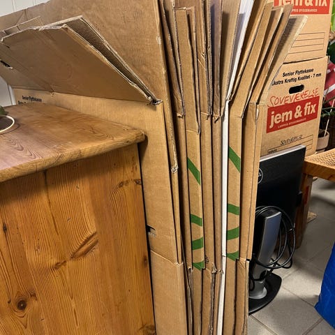 Vi sælger ca 35 stk flyttekasser. Næsten alle er ekstra kraftige.