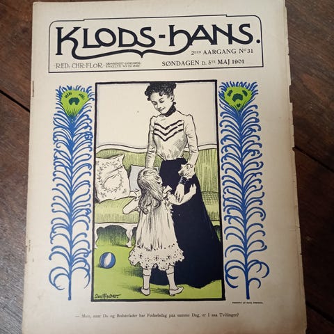 Blad/magasin fra 1902. Klods Hans. Med flere bla. små annoncer og reklamer. Forside af tegner Poul Fischer.