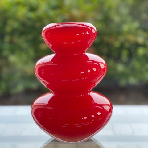 Vasen er mundblæst i glas på Pernille Bülows værksted på Bornholm.