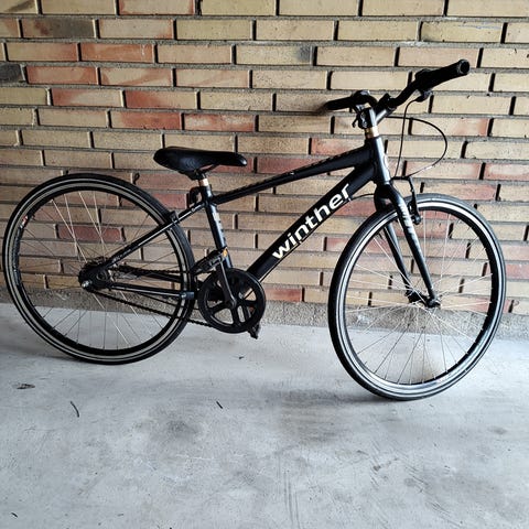 Winther R2 herrecykel med 24” hjul og sort aluminiumsstel. Cyklen har gearsystem Shimano Nexus med 7 gear og V for- og bagbremse. Super velholdt.