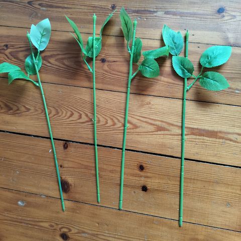 4 x fine, smukke, kunstige blomster, dekoration og blade, på stilk, Blomster, Dekoration. Prisen er for dem alle, sælges kun samlet, sammen. Fast pris