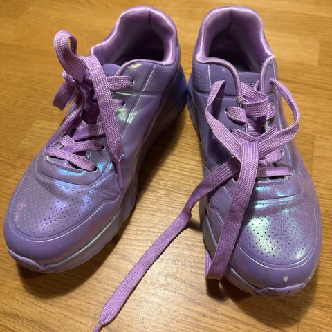 Skechers børnesko til dreng i størrelse 24. Skoene er blå med sorte og grønne detaljer, designet med velcrorem og snørebånd for nem justering. Materialet er åndbart og velegnet til daglig brug.