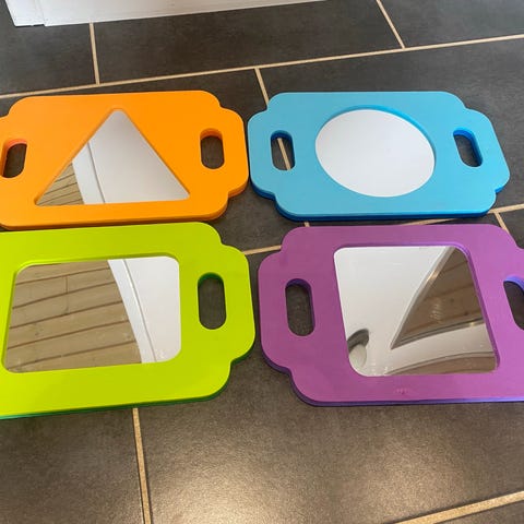 Sikkerhedsspejl med massiv træramme, spejlet er fuldlimet for at sikre børn mod skår,...fast sikker ramme sælges