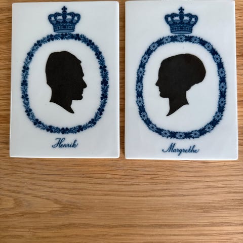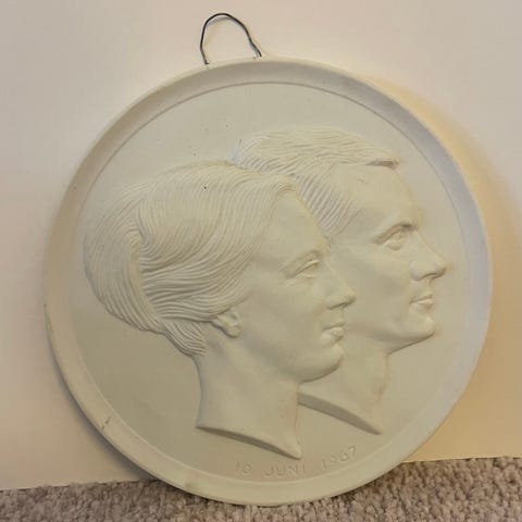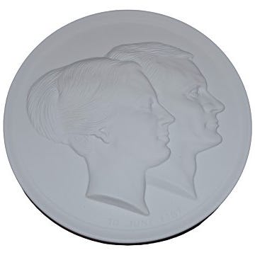 Porcelænsplakette fra 1967 i anledning af Dronning Margrethe II og Prins Henriks bryllup.