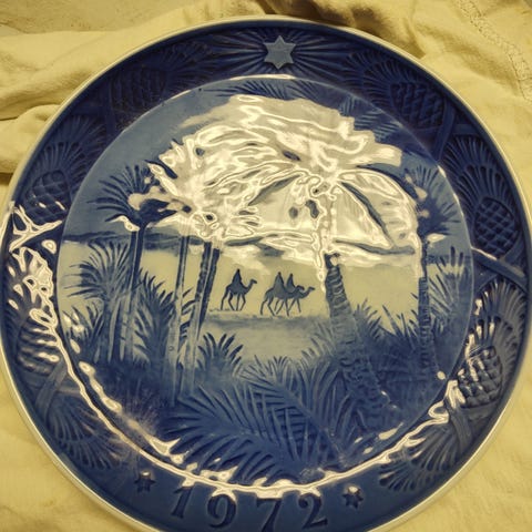 Royal Copenhagen Juleplatte 1961 pynteplade i blå porcelæn. Tallerkenen har et motiv af et skib med flere master og sejl. Diameteren er standard for juleplatter, og den er fremstillet af porcelæn. Produktet er dekorativt og kan anvendes som samlerobjekt eller til udsmykning.