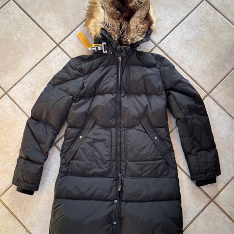 Super flot Parajumpers jakke. Str. M. Brugt meget få gange, derfor er den som ny. Farven er meget mørk blå. Den ligner næsten sort.