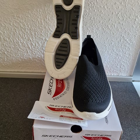 Skechers GOwalk Air Cooled sneakers i blå farve, størrelse 38. Skoene er designet med Goga Mat indersål for komfort og luftgennemstrømning. Velegnet til generel sport og hverdagsbrug.