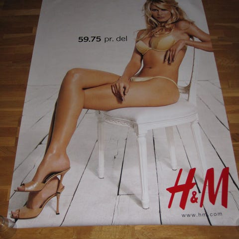 Original H&M reklameplakat fra 1990’erne med supermodellen Claudia Schiffer.