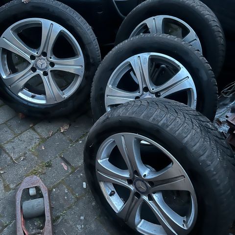 Sælger disse Mercedes fælge med vinterdæk. De har siddet på en E220 W212. De er fra 2018.