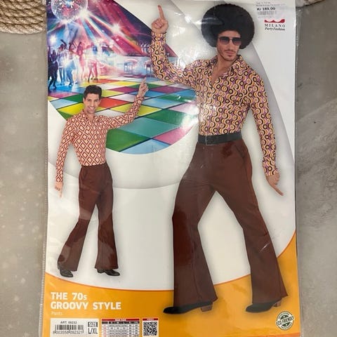 Dancing Queen - disco diva sættet har været pakket ud men ikke brugt. Buks og overdel uden paryk, uden sko