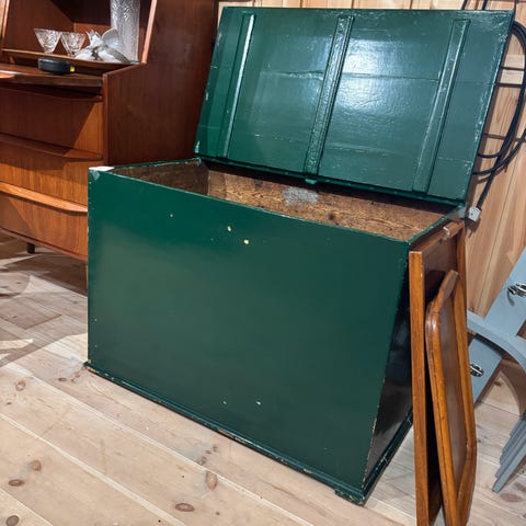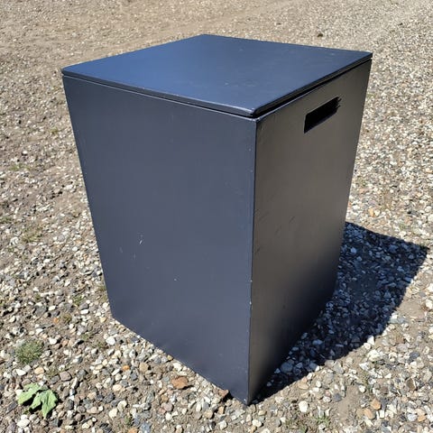 Høkasse af træ. Sortmalet. Lidt skader på malingen. Velholdt indvendig. Bredde 57 cm. Dybde 45 cm. Højde 49 cm