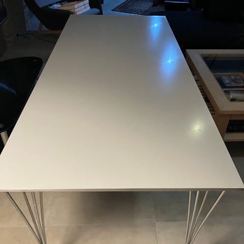 Er købt brugt for 3 år siden af en sælger som har haft det i 30 år. Har tydelige brugstegn, men kan sagtens bruges. Sælges udelukkende, da vi har fået nyt bord:)
