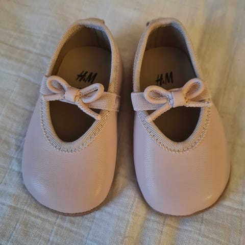 H&M ballerina sko til piger i størrelse 16. Skoene er hvide med en dekorativ sløjfe foran og har en blød sål. Egnet til små børn.